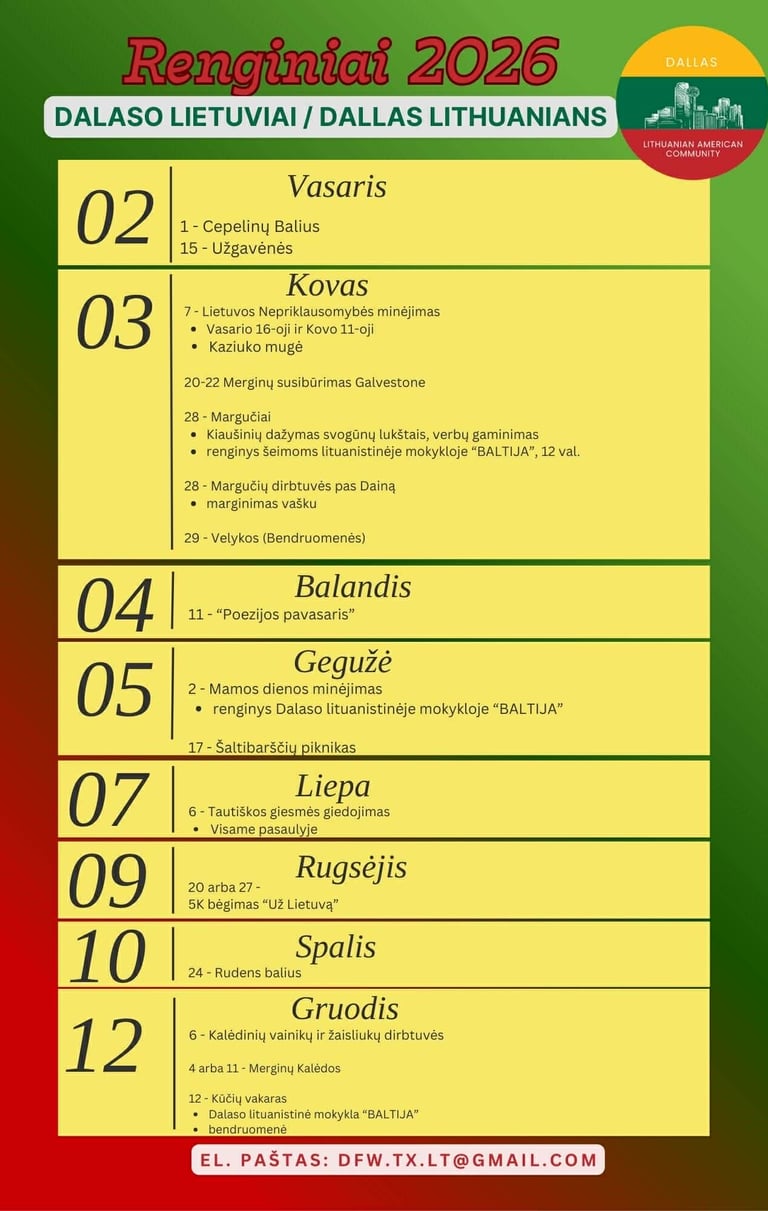 2026 m. Renginių kalendorius