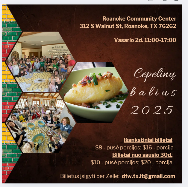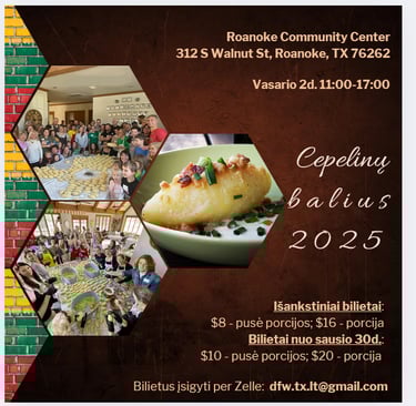 Skaniausi cepelinai visame Teksase, tik kartą per metus, Vasario 2d. su mūsų bendruomene!