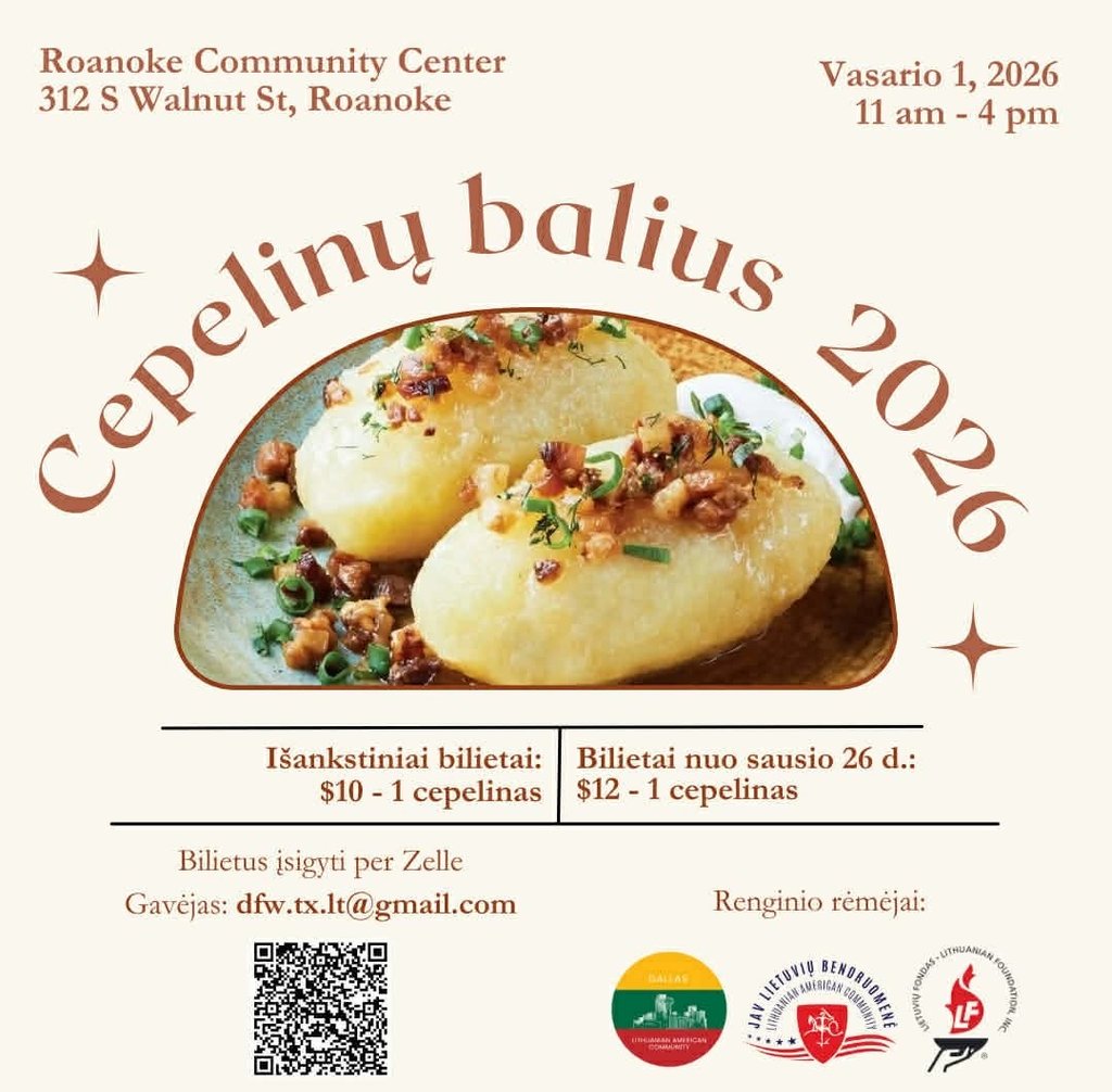 • Bilietai po sausio 26 d. – $12 (1 cepelinas)