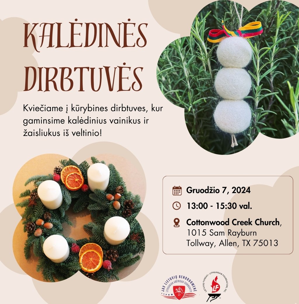 Gruodžio 7d. kviečiame į kūrybines dirbtuves, kur gaminsime kalėdinius vainikus ir žaisliukus iš veltinio!