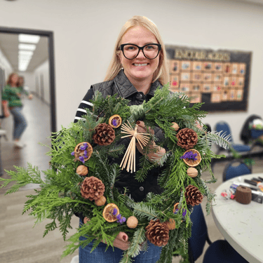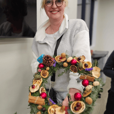 Advento vainikų pynimas: mokysimės pinti vainikus iš natūralių eglių šakų ir puošti juos džiovintais apelsinais, kankorėžiais ir kitomis natūraliomis dekoracijomis.